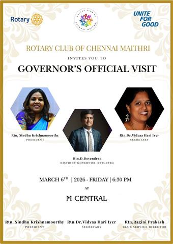 Rotary Club of Chennai Maithris Official Visit was held on 06/03/20. . .